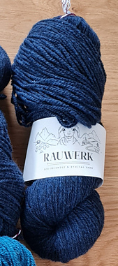 The yarn has not been washed after spinning and will bloom when the spinning oil is removed. It’s listed as heavy DK, but after washing, it feels closer to an aran or heavy worsted.