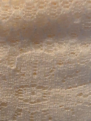 Sassy Lace is made of a sheer lace that has holes woven into the top edge so it can be easily be knit or crocheted. Sassy Lace adds a romantic look to any outfit.