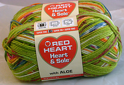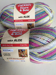 This is different yarn and fiber content than Red Heart Heart & Sole that doesn’t have the words “With Aloe” on the label