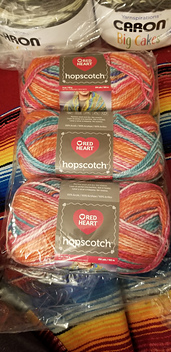 Hopscotch is a beautiful acrylic yarn with a unique and colorful dye effect. It’s a heavy worsted weight so it is perfect for all kinds of projects from garments to throws and accessories.