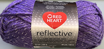 Basic 3-ply acrylic yarn with added reflective thread wrap that makes this yarn reflect light, aiding in nighttime visibility. Reflective component shows up amazingly well in flash photography. See for yourself how it lights up. Fun to take photos and share them on social media!
