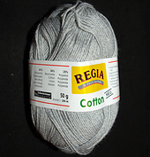 This is Regia’s solid colored cotton-blend sock yarn and it was also available in 50 gram (219 yards) skeins.
