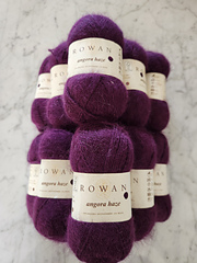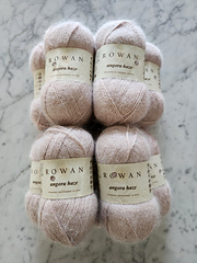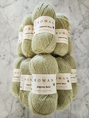 Rowan’s Angora Haze is from French and Chinese Angora Rabbits. The hair is removed by combing and clipping with special safety scissors that cannot harm the rabbit.