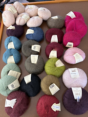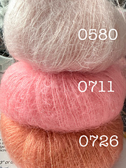 A versatile mix of 70% Super Kid Mohair and 30% Silk which can be cleverly adapted to create a lustrous, cobweb like finish or knitted double to create a fabric with more substance.