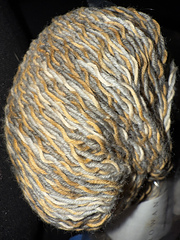 Summerspun is a beautiful yarn in a 50% Merino Wool and 50% Cotton blend. The yarn is made by twisting a printed cotton end and a melange wool end together, resulting in a wonderful subtle striping effect.
