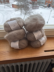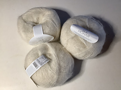 SILK MOHAIR contains 60% kid mohair, 15% wool and 25% silk. It is the exclusive mohair yarn for the discerning knitter. One does not need many balls for knitting an airy and light garment. Well suited to knit together with other qualities. Meters per 50 gram ball = 280