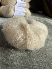 Tynn Silk Mohair gives sheer garments and is very suitable to knit together with other yarns for exciting effects as well. The composition of Tynn Silk Mohair is 57% mohair, 15% wool and 28% silk.