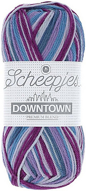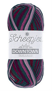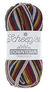 Scheepjes Downtown is a self-striping, Premium blend yarn made from Extra Fine Merino Wool and Nylon fibres. This blend of fibres creates a light and warm yarn that is also durable and easy to maintain. Downtown is further characterised by a soft touch, beautiful drape and excellent stitch definition, making it the ideal choice of yarn for making quirky, striped accessories, such as hats, socks and cowls. Downtown is available in 18 colourways.
