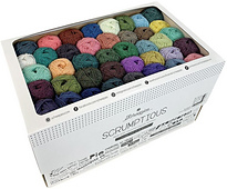 Scheepjes Scrumptious is a DK-weight yarn made from an eco-conscious blend of 50% Recycled Polyester sourced from recycled plastic bottles and 50% Acrylic. Soft and luscious, this yarn is available in gorgeous, lightly heathered shades that add depth and texture to your creations. Perfect for crafting affordable and easy-care items, this giant box filled with bite-sized balls allows you to create generously sized accessories for the home and more!