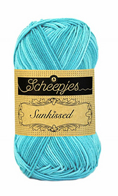Scheepjes Sunkissed yarn has a subtle colour variation that gives a soft ‘sun bleached’ effect to the yarn. 100% un-mercerized cotton means no shine to this yarn. Sunkissed is beautifully soft with great stitch definition and a soft drape. Can be used in conjunction with Scheepjes Cotton 8 yarns as the weight and thickness are the same, except Cotton 8 is a solid Colour.