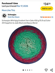 Whirligig and Whirligigette work together. Whirligig is a gentle colour changing yarn and its ‘sister yarn’ Whirligigette is a matching single colour. These yarns can be used in combination with each other as they are the same fiber content and weight.