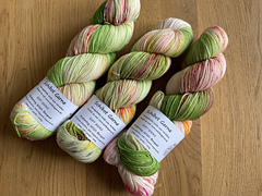 This yarn in 4ply fingering weight is suited for all knitting and crocheting projects. With only 19.5 microns, it feels soft and pleasant against bare skin. Our bases are made in Germany by Atelier Zitron. We offer highest quality yarns, hand dyed with love.