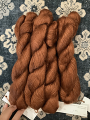 The glowing silk core of this stunning lace weight yarn shines through an amazing soft halo ofsuperfine kid mohair. Knit Tosh Silk Cloud solo for an ethereal fabric or combine for a glowing halo. This weightless yarn shines with radianceand adds elegance to any pattern.