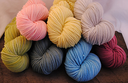 Bannock is 100% Targhee wool from domestic sources and is spun in the US as well. It is a 3-ply yarn with good elasticity and stitch definition.
