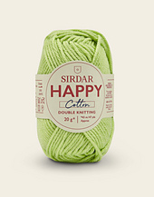 Happy Cotton is our 100% cotton DK yarn that comes in a little 20g ball. Perfect for small multi coloured projects, this yarn comes in a range of 50 happy shades from pretty pastels to cheerful brights. Suitable for machine washing on a wool cycle.