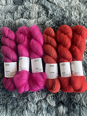 Haven is versatile and can be used alone for a lace or light fingering weight gauge, held double with itself for a sport weight gauge, or paired with Halo to produce a delicate, lightweight fabric with a gorgeous drape and soft, cloud-like halo.