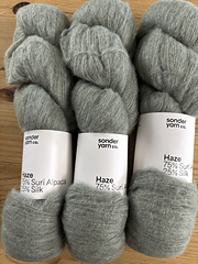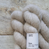 Knit your story with HAZE - the stuff of clouds and dreams. Gossamer soft and light as air, this luxurious blend of Suri Alpaca and silk is a delight to wear against the skin. Just like our HALO base, HAZE can be used on its own (held single or double) or in combination with other yarns to add fluffy texture to your projects. A perfect substitute for those sensitive to mohair.