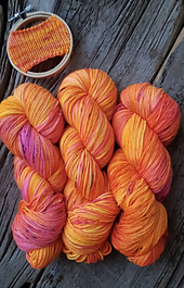 All my gradient sets are one of a kind, even when creating with the same colours. This is due to the way I dye each set and how the colours manoeuvre between the skeins while in the pan. Each one has a colourful life all its own!