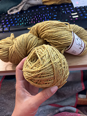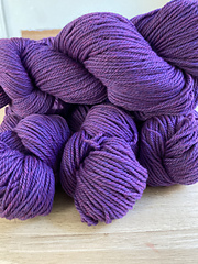 From Stonehedge Fiber Mill’s web site: “The three ply worsted weight yarn is spun to 1000 yards per pound, which in 4-ounce skeins is 250 yards per skein. This yarn is worsted spun, meaning it’s very very smooth and almost shiny in appearance. It will give great stitch definition for intricate patterns such as lace, cables, and knit/purl patterns.”