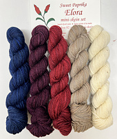 Elora is 100% Canadian, a locally-sourced yarn spun from Norbouillet (rambouillet-cross) fleeces. This fingering-weight wool is very fine, and is just as soft as our imported Merino. Our mini-skeins come in sets of 5 or 6 carefully chosen hand-dyed colours, perfect for colourwork or gradient patterns.