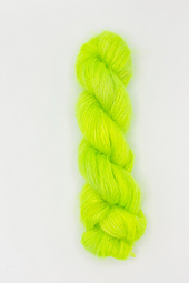 Mho Mho is made with the softest super kid mohair we could find blended with a touch of silk. We’re in love with the way it takes the dye—it has some serious glow! Knit held with other yarns it provides a translucent wash of color and a gorgeous halo of fluff.