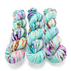 This yarn is a single ply yarn that is deliciously soft and squishy. One skein would be enough for a bulky hat or cowl. Great for instant gratification! Because this yarn is so thick it absorbs dye differently and has a very unique look. It looks to me like it glows. Although this yarn is superwash, I recommend hand washing due to the more delicate nature of single ply yarns.