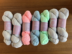 Our Merino DK are 100% extra fine superwash Merino, they are ethically sourced, mulesing free and hand dyed in small batches in our Brooklyn studio.