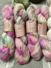Our Mohair Silk base uses 80% Super Kid Mohair and 20% Silk. They are ethically sourced, custom milled and hand dyed in small batches in our Brooklyn studio.