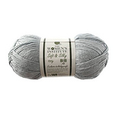 25 sts x 36 rows to 10cm/4”. This is sport weight in the Ravelry system even though 4ply is printed on the skeins.