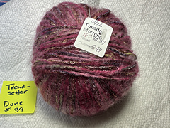 7/22/2010: Trendsetter website lists fiber content as 41% Mohair, 29% Nylon, 30% Acrylic