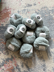 Soft wool is combed with Cashmere to create an open and unspun fiber. Nylon elastic is twisted and as it’s twisted, the main fibers are laid in place to catch. As the fibers are open, they fluff and remain soft and will lock to the core when the strong colors are dyed. The finished yarn feels incredible and with the elastic core, the yarn remains in place and the finished size stays the same.