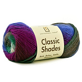 Classic Shades is a soft-to-the touch acrylic/wool roving style yarn featuring a stunning selection of colors which shade easily, one to the next. With a sheen similar to silk, finished garments take on a painterly quality perfect for sweaters and winter accessories --- plus, this worsted weight yarn is machine washable!