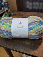 Our most exciting self-patterning yarn yet! Easel features a mix of brilliant stripes, speckles, and faux Fair Isle. Could you ask for a more fun sock yarn? The easy-care blend of superwash wool and sturdy nylon ensures your socks will pass the test of time. Easel is best for socks, but is great for accessories, too!