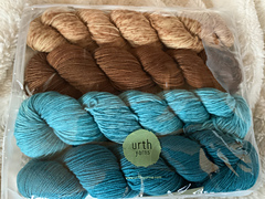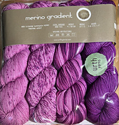 For those of us who love a color and want to stay within a gradient range of just that color. Merino Gradient was developed to do just that, keep your color as it migrates from light to dark across four skeins.