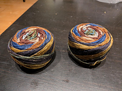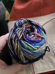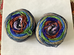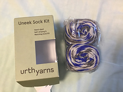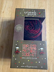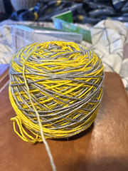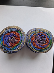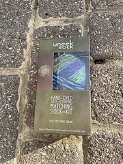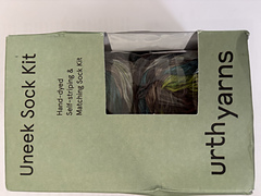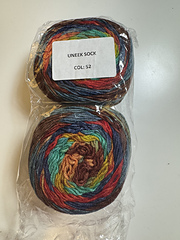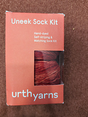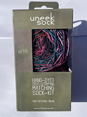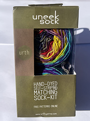 As a natural compliment to the rest of the Uneek line behold our sock yarn. A self striping 75/25 Extra Fine Merino/Nylon blend hand dyed and made up into two 50 gram cakes sold together, enough to make a perfectly balanced pair of socks or what ever your imagine can cook up.