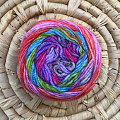 A self striping 75/25 Extra Fine Merino/Nylon blend hand dyed and made up into two 30 gram cakes sold together, enough to make a perfectly balanced pair of mini socks or what ever your imagine can cook up.