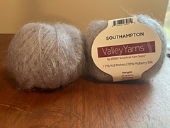 Light and airy Valley Yarns Southampton is a plush and super-soft blend of mohair and silk with a fabulous halo! Southampton can be worked at multiple gauges and with one to three strands, for fabrics ranging from lacy and open to more dense. Even lacy shawls are warm when made in this yarn, which comes in spectacular solid colors that seem to glow.