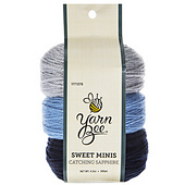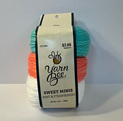 Packs of 3 separate balls of yarn, each 100 yards/1.4 oz (92 meters/40 grams) of a different color