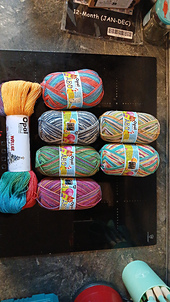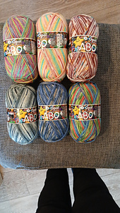 This yarn was only available in Germany. Some test yarns were unlabeled and called Opal Abo by purchasers. Later on the company came out with an Opal Abo labeled yarn. All stashes are combined here.